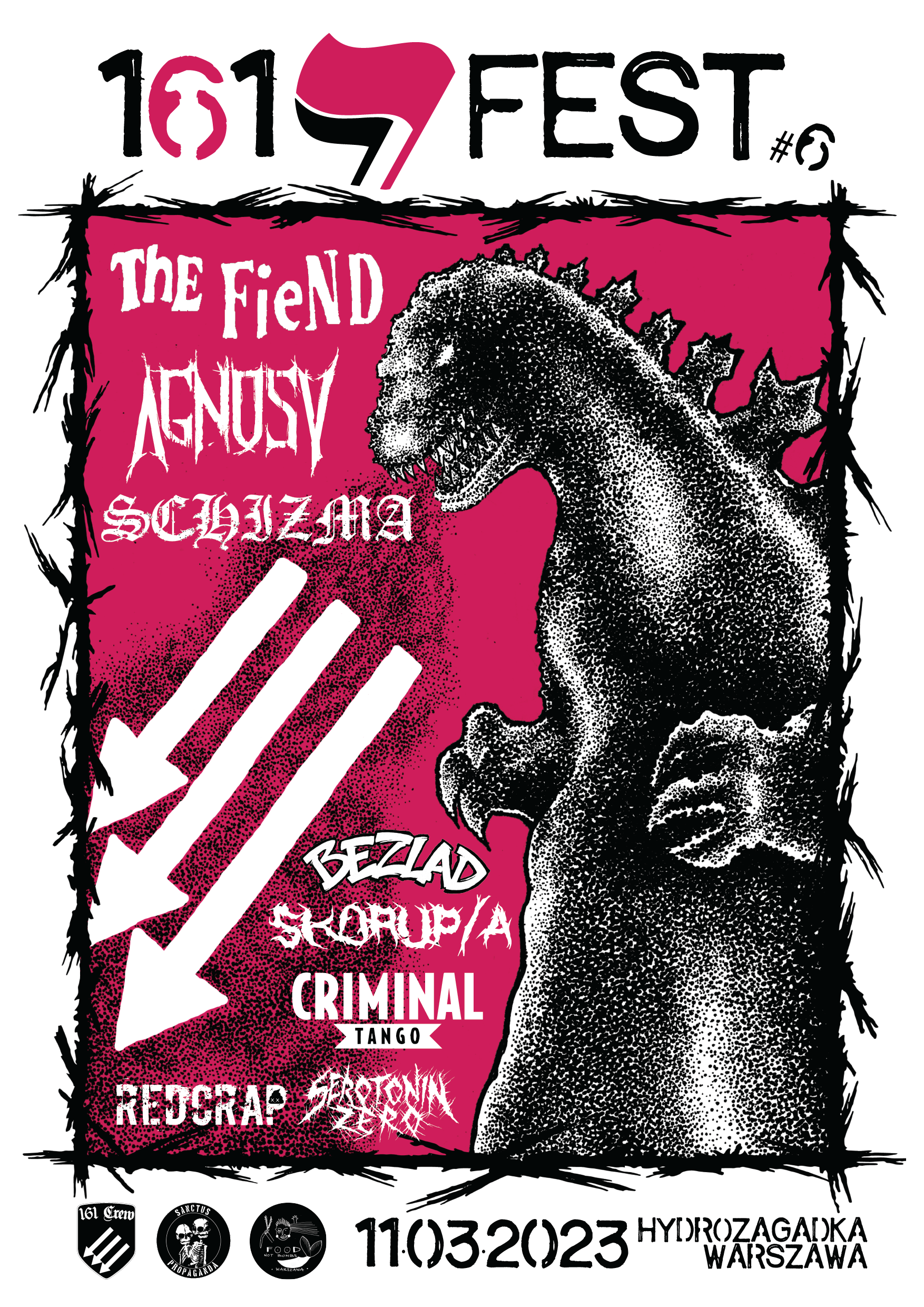 Cześć. Rozpoczynamy przedsprzedaż biletów na 6 edycję 161 FEST! Opcje są dwie: 1. Wejściówka – 95 złotych 2. Wejściówka + festowa koszulka – 150 złotych. Opcja z koszulkami czynna do 11 lutego. Koszulki tylko w przedsprzedaży i odbiór na bramce. Nie będzie innej możliwości zdobycia tej koszulki! Zamówienia przez messenger lub mail: distro161crew@riseup.net