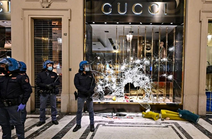 Zainicjowane przez właścicieli małych biznesów, spontaniczne wybuchy agresji przeciwko obostrzeniom, przybrały inną formę w każdym mieście, z wieloma wspólnymi cechami na północy. W Mediolanie i Turynie, 26 października i we Florencji 30 października, pojawiły się dwuznaczne głosy, zachęcające do wyjścia na ulice i złamanie ograniczeń. Nie miało to żadnego uwarunkowania ideologicznego, w demonstracjach mieli występować przedstawiciele wszystkich grup społecznych. W Turynie grupa młodych demonstrantów splądrowała kilka luksusowych sklepów. Zdjęcie przedstawiające wybitą szybę w sklepie Gucci stał się ikoniczne dla protestów. W Mediolanie większość aresztowanych to była niepełnoletnia młodzież. We Florencji, na ścianach pojawiły się napisy o treści „Dajcie nam przyszłość”. We wszystkich tych miastach, niepokój wzbudzały wielogodzinne starcia z policją. Był to główny cel demonstrantów.