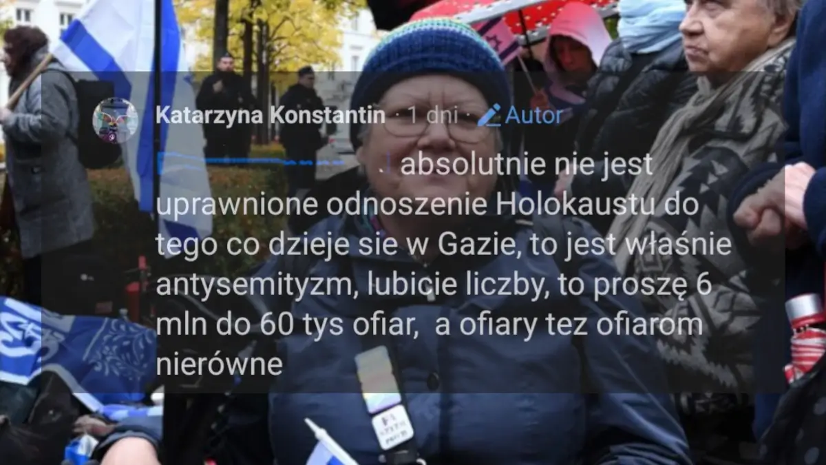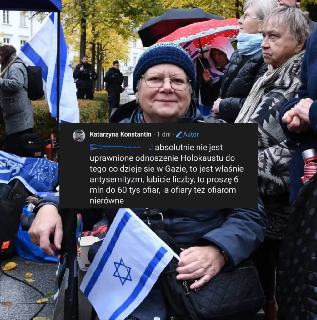 Jak natomiast sama Babcia Kasia argumentuje swoją postawę? Oczywiście jako walkę z „antysemityzmem”. Emerytka posuwa się nawet do tak obrzydliwych manipulacji, jak porównywanie liczby ofiar podczas drugiej wojny światowej z obecną sytuacją w Gazie. Takie podejście to relatywizowanie cierpienia. Każde ludobójstwo, niezależnie od skali, jest moralnie nieakceptowalne i nie powinno być mierzone w kategoriach „więcej” czy „mniej” ofiar.