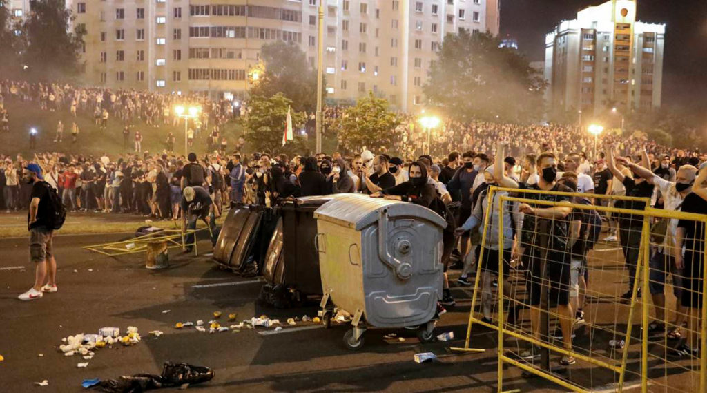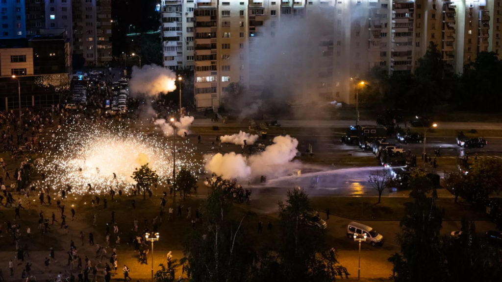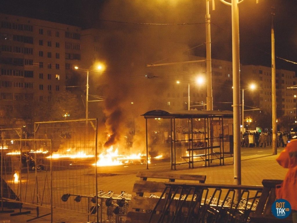 More molotov cocktails used in clashes in #Minsk #Belarus. People are fighting dictator Lukashenko rulling the country for the last 26 years. pic.twitter.com/9nYFqM8zCT