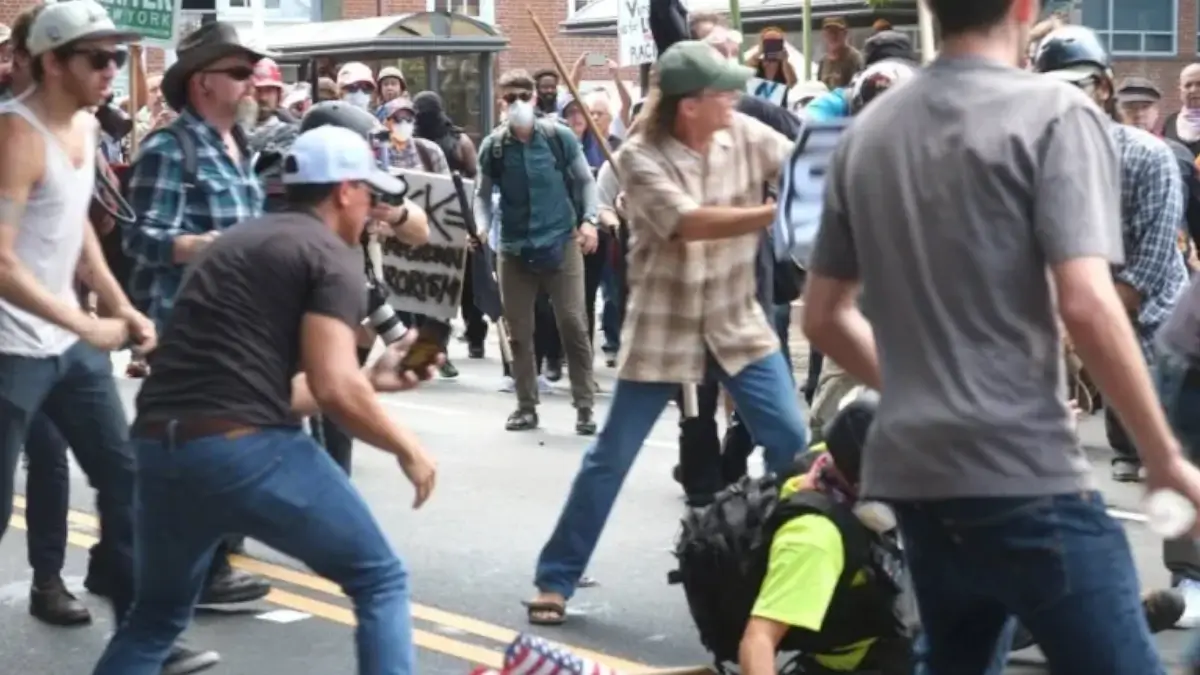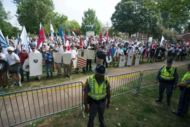 12 sierpnia wściekli mieszkańcy, przywódcy religijni i inni przeciwnicy faszyzmu stawili czoła faszystom gromadzącym się w centrum Charlottesville. Policja przyglądała się temu, pozwalając na intensywne konfrontacje między obiema grupami, nie robiąc nic. Antyfaszyści znaleźli się w niestabilnej i niebezpiecznej sytuacji.