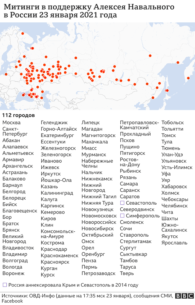 Big protests all around #Russia in support of Navalny and against #Putin. Minor clashes with police here and there. Over 2500 people detained. pic.twitter.com/lTRrfEaxEZ