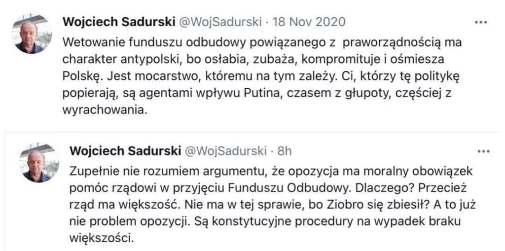 Zaciekłe ataki, były o tyle zabawne, że jeszcze do niedawna Borys Budka (przewodniczący KO) jeszcze parę miesięcy temu deklarował bezwarunkowe poparcie dla unijnego Funduszu Odbudowy. Ale smaczków było dużo więcej…