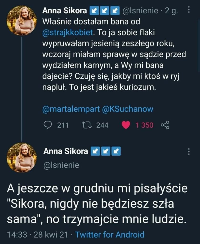 Ludzie którzy walczyli za sprawę, dostawali gazem, marznęli na ulicy i narażali się na szereg opresji ze strony rządu, dziś są wykluczeni z debaty i nie mają najmniejszego prawa głosu w sprawie. Narracja, że Lempart sprzedała swoje ideały, mija się z prawdą. Dla niej od zawsze liczył się tylko zysk i własna pozycja. Nie ma co się oszukiwać, że liberałowie się zmienią, oni tylko będą inaczej kłamać. Za każde wytknięcie im prawdy na social mediach, można dostać bana, nawet jeśli jest się bohaterką za sprawę.