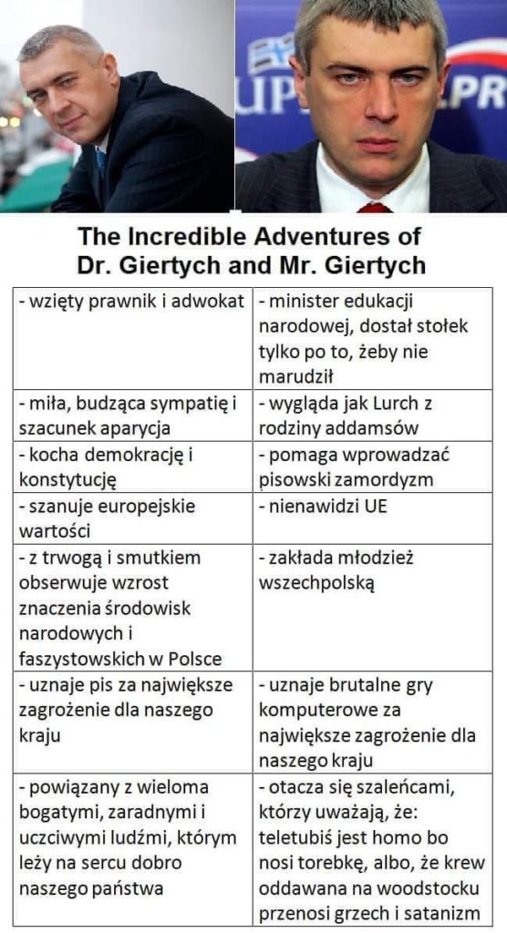 Romek, którego doskonale pamiętamy z poprzednich „wcieleń”, tym razem w skrócie i trochę prześmiewczo, ale nie ma się z czego śmiać zasadniczo, ponieważ program edukacji w Polsce, wprowadzony za czasów kiedy był ministrem edukacji, realizowany jest po dziś dzień.