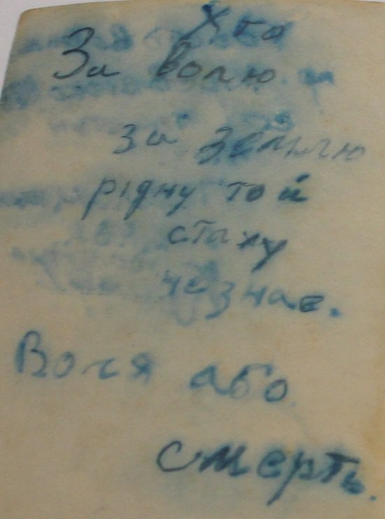 Okazało się jednak, że zdjęcie było częścią większego zestawu, który zawierał osobne zdjęcie tych samych żołnierzy prezentujących rewers sztandaru, na którym widnieje napis „Naddnipriansʹkyi Kish”.[23] „Kish” [kosz] to termin kozacki, który pierwotnie określał obozowisko wojskowe lub osadę. W czasie ukraińskiej wojny domowej termin ten był używany do oznaczenia formacji zbliżonej do dywizji wojskowej.[24] Tak więc napis na fladze w przybliżeniu tłumaczy się jako „Dywizja Naddnieprzańska”. Jednak machnowcy nigdy nie używali terminu „kisz” i rzeczywiście dywizja ta należała nie do Machno, lecz do innego powstańca ukraińskiego o nazwisku Swirid Kocur.[25]