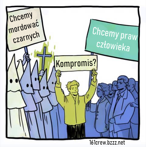Liberalny przekaz pomija celowo istotne dla radykalniejszych feministek\ów, oraz grup prawdziwie marginalizowanych, sprawy, po to, by bunt protestu zamienić w przyszłe poparcie dla głównej opozycji wobec partii rządzącej. Niektóre liberałki i liberałowie, tylko czekają, aż protesty ustaną, bo nie chcą się narażać, wychylać, łamać prawa, zależy im by mamić ludzi pustymi hasłami o demokracji, normalności i praworządności.