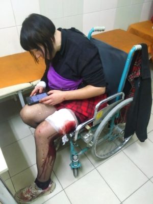 „Bili nas młotkami i teleskopami, zakrywaliśmy się rekami. Były kałuże krwi, jednemu chłopakowi, Sergiejowi, rozbili głowę i ranili w serce, został podłączony do aparatury” – powiedziała Aleksandra, jedna z pobitych aktywistek, której pocięto ręce i poważnie pobito. Weronika ma nogę przebitą nożem i złamaną rękę, a Dmytro palce wybite ze stawów, pocięte plecy i potłuczone nogi.