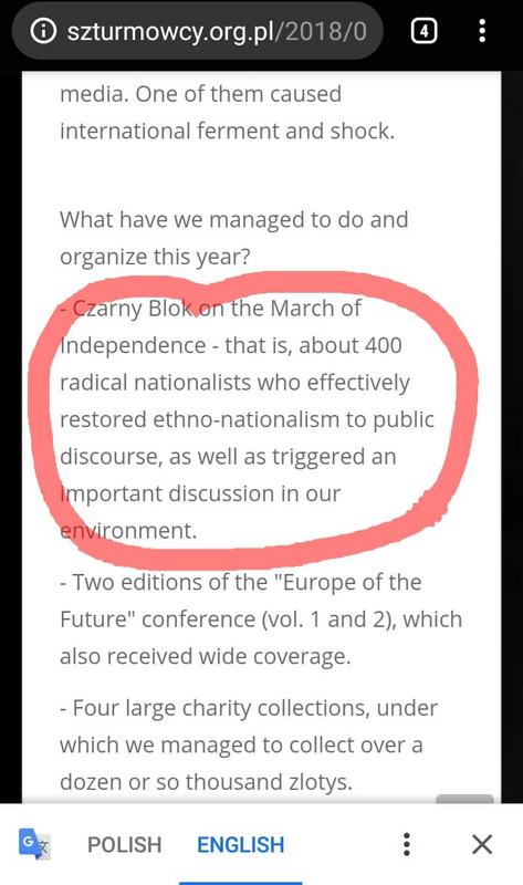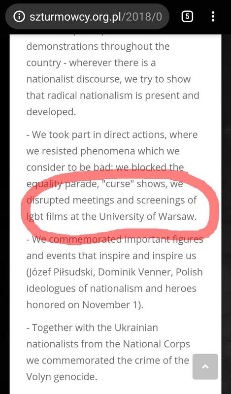 Kolejną grupą, która brała sobie udział w konferencji byli polscy Szturmowcy, którzy szczycili się swoim uczestnictwem w najbardziej ekstremistycznym skrzydle marszu niepodległości w Warszawie oraz ze swojego agresywnego zakłócenia studenckiego pokazu filmowego o tematyce LGBTQ+, chwalili się też blokadą parady równości.