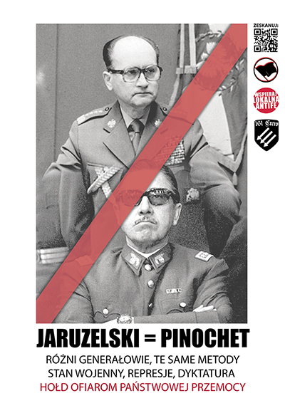 Użyte zostały wizerunki znanych postaci historycznych. Skrajna prawica ma tendencje do gloryfikowania zbrodniarzy i umiłowanie do władzy totalitarnej. Państwowa przemoc im nie przeszkadza, a nawet biorą w niej czynny udział. Dlatego tak jak niechlubne postacie z plakatów, noszą krew na rękach i winę za popełnione zbrodnie. Prawicowcy mają swoje tuby propagandowe, ale ulica nie zapomina i nie wybacza.