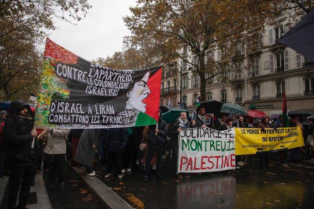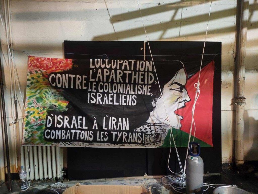„Przeciwko izraelskiej okupacji, apartheidowi i kolonializmowi — od Izraela po Iran, walcz z tyranami!”