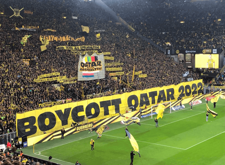 Najbardziej widocznym jest chyba protest na stadionach w Niemczech. Podczas ostatnich meczów, na praktycznie wszystkich stadionach można było zobaczyć banery, nawołujące do bojkotu tych mistrzostw. Powstała kampania Football Blackout for Human Rights”, która została przygotowana dla grupy Loud Against Nazis (grupa związana z St. Pauli) i ruchu „Boycott Qatar 2022”. Film wyprodukowany na jej potrzeby wyjaśnia, że Katar jest krajem, w którym stwierdzono „poważne łamanie praw osób LGBTQ+, praw kobiet i praw człowieka”. Zwrócono w nim również uwagę, że od 2010 roku i momentu ogłoszenia Kataru jako gospodarza tegorocznych mistrzostw świata, zginęło ponad 15 000 robotników, którzy byli zaangażowani w prace przy budowie stadionów, na których będą odbywać się mecze.