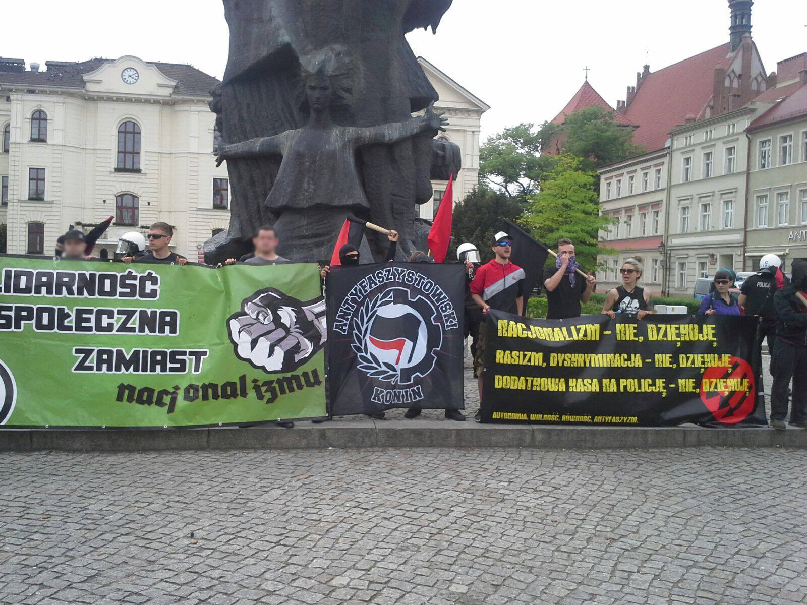 Policja ich spisała, po czym wypuściła wolno. Krótko po 15:00, po odczytaniu odezwy, ok. 200 osobowa demonstracja ruszyła w kierunku Starego Rynku. W trakcie przemarszu można było usłyszeć hasła: „Bydgoszcz wolna od nacjonalizmu!”, „Każdy inny wszyscy równi”, „Alerta, alerta antifascista”, „Onr to zbiór zer” czy „Znajdzie się kij na faszystowski ryj!”.