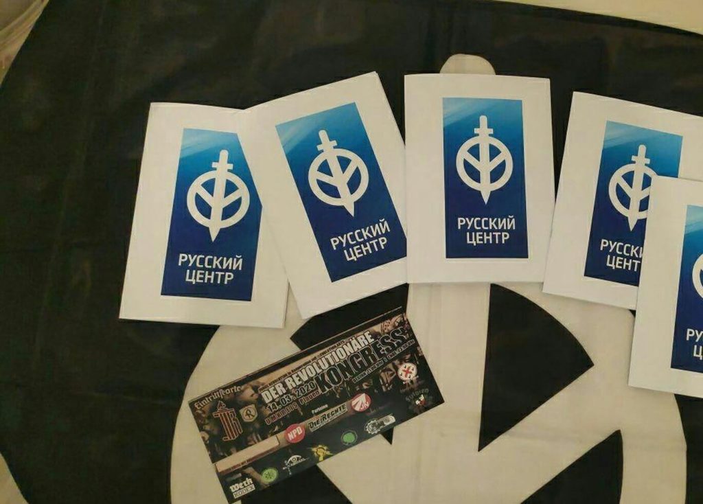 „Rosyjskie Centrum” używa symbolu wymyślonego w 1930 roku przez rosyjskiego faszystę i nazistowskiego kolaboranta z „Rosyjskiej Armii Wyzwolenia”, Viktora Larionova. Miecz symbolizuje walkę, okrąg jedność, a całość przedstawia runę Man (runę życia). Tiukin upozycjonował się po stronie ukraińskiej dzięki sukcesowi ukraińskiego Majdanu, który pokazał, że samoorganizacja i skuteczny opór są możliwe. Według niego to był wstęp do Rosyjskiej Rewolucji, Majdanu w Moskwie. Denis Tiukin uważał, że na ten moment niemożliwym jest utworzenie w Rosji nacjonalistycznego, ośrodka politycznego, ale zauważył ogromne możliwości na terytorium Ukrainy. Tak oto rosyjscy nacjonaliści zaczęli spływać do Kijowa i się tam organizować. Te spostrzeżenia były powielane przez wielu rosyjskich neonazistów, którzy emigrowali do Ukrainy. Utworzyli tam takie neonazistowskie grupowania jak choćby Wotanjugend, zbudowaną w otoczce subkultury klubów sztuk walki (np. White Rex) oraz zespołów muzycznych (takich jak M8I8th).