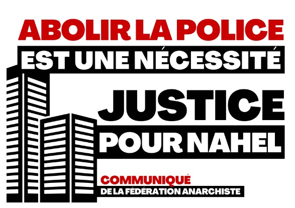 W ciągu ostatnich kilku dni Paryż ogarnęły masowe zamieszki, a ludzie w całym kraju demonstrowali przeciwko zabójstwu Nahela Merzouka przez francuską policję. Ten bezduszny akt rasistowskiej brutalności wstrząsnął francuskim społeczeństwem, które teraz powstaje przeciwko przestępczym siłom policyjnym i przemocy, której dokonują całkowicie bezkarnie. Poniżej publikujemy oświadczenie Frankofońskiej Federacji Anarchistycznej, która walczy o prawdę i sprawiedliwość wraz ze swoimi rodakami na ulicach.