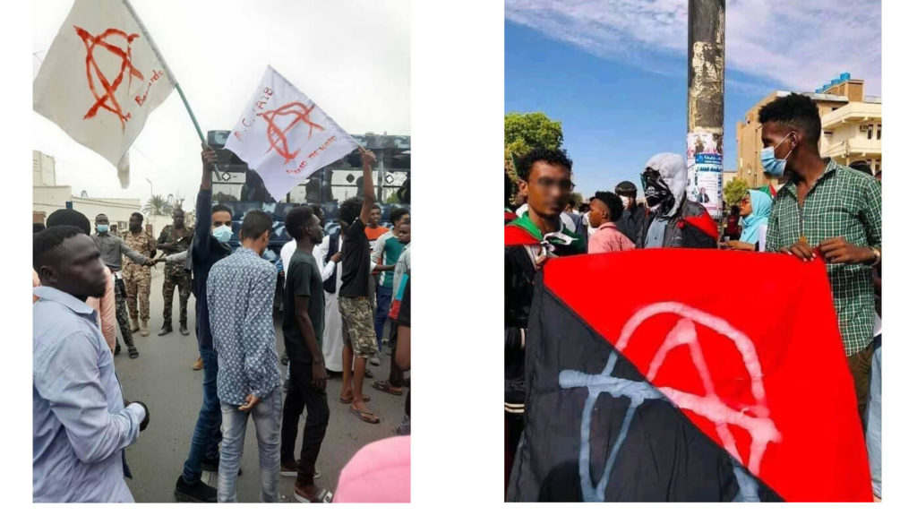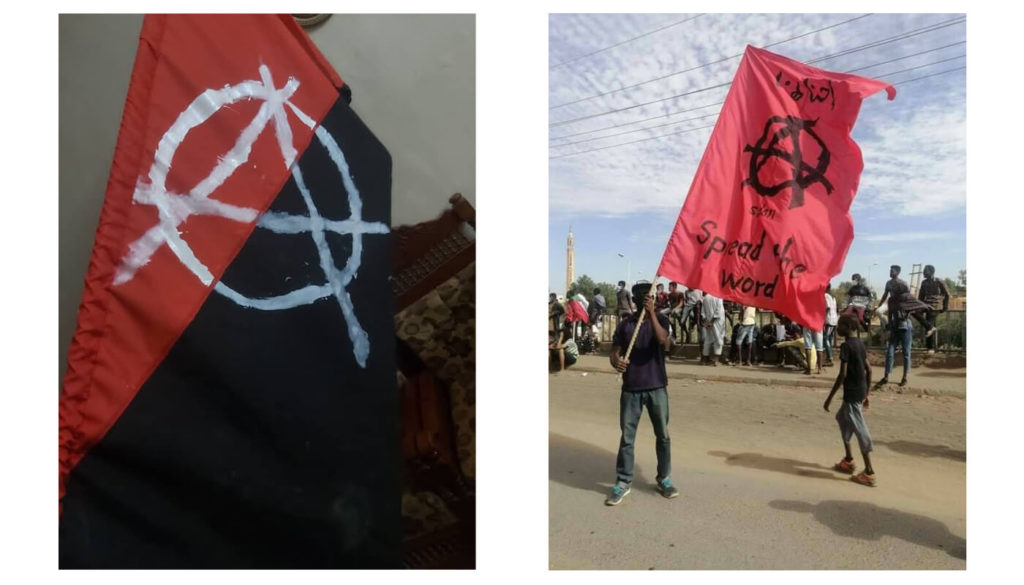 My, anarchiści z Chartumu, jesteśmy członkami „komitetów oporu” i wznosimy nasze flagi podczas marszów z resztą rewolucjonistów, a także promujemy anarchię, pisząc graffiti na murach.