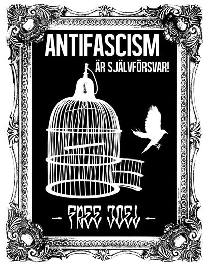 Joel Almgren, szwedzki antyfaszysta skazany na 6.5 roku (po niedawnej apelacji wyrok zmniejszono do 5.5 roku) za obronę antyrasistowskiej demonstracji na przedmieściach Sztokholmu w...