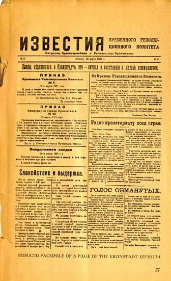 „Bez przelewu ani jednej kropli krwi, my żołnierze Armii Czerwonej, marynarze i robotnicy Kronsztadu wyzwoliliśmy się z niewoli Partii Komunistyczej, zachowując jej członków przy życiu. Grożąc nam artylerią, chcą oni teraz byśmy z powrotem poddali się ich tyranii.