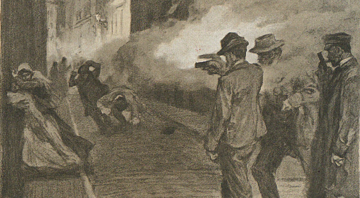 „W październiku 1906 roku w walkach bratobójczych w Łodzi zginało 36 osób, a 21 odniosło rany. Listopad był miesiącem w którym poległo 29 osób, a 30 odniosło rany. W grudniu zastrzelono 54 osoby, a 36 odniosło rany” (Lucjusz Włodkowski „Z kamieniem i brauningiem…”.)