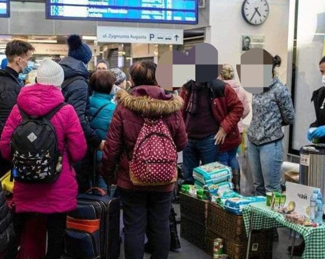 - W trakcie rozstawiania się z bezpłatnym jedzeniem i napojami dla uchodźców z Ukrainy (około 15 prywatnych osób) przyszedł patrol SOK z policją, z informacją, że nie wolno się nam tu rozstawiać, bo nie ma zgody zarządcy budynku, czyli PKP. Zarządca dworca powiedział, że to jest w kwestii wojewody, Urząd Wojewódzki odsyła nas z powrotem do zarządcy dworca… Koniec końców mówimy, że my tu zostajemy, a oni niech robią co chcą. Pojawia się jakiś dziennikarz, są robione zdjęcia, sytuacja staje się niezręczna i patrol odchodzi, ale cały czas krążą do około nas….
