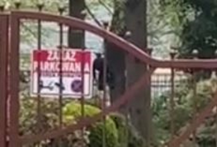 Materiał nadesłany przez przechodnia, znajduje się na nim nacjonalista który zawisł na płocie